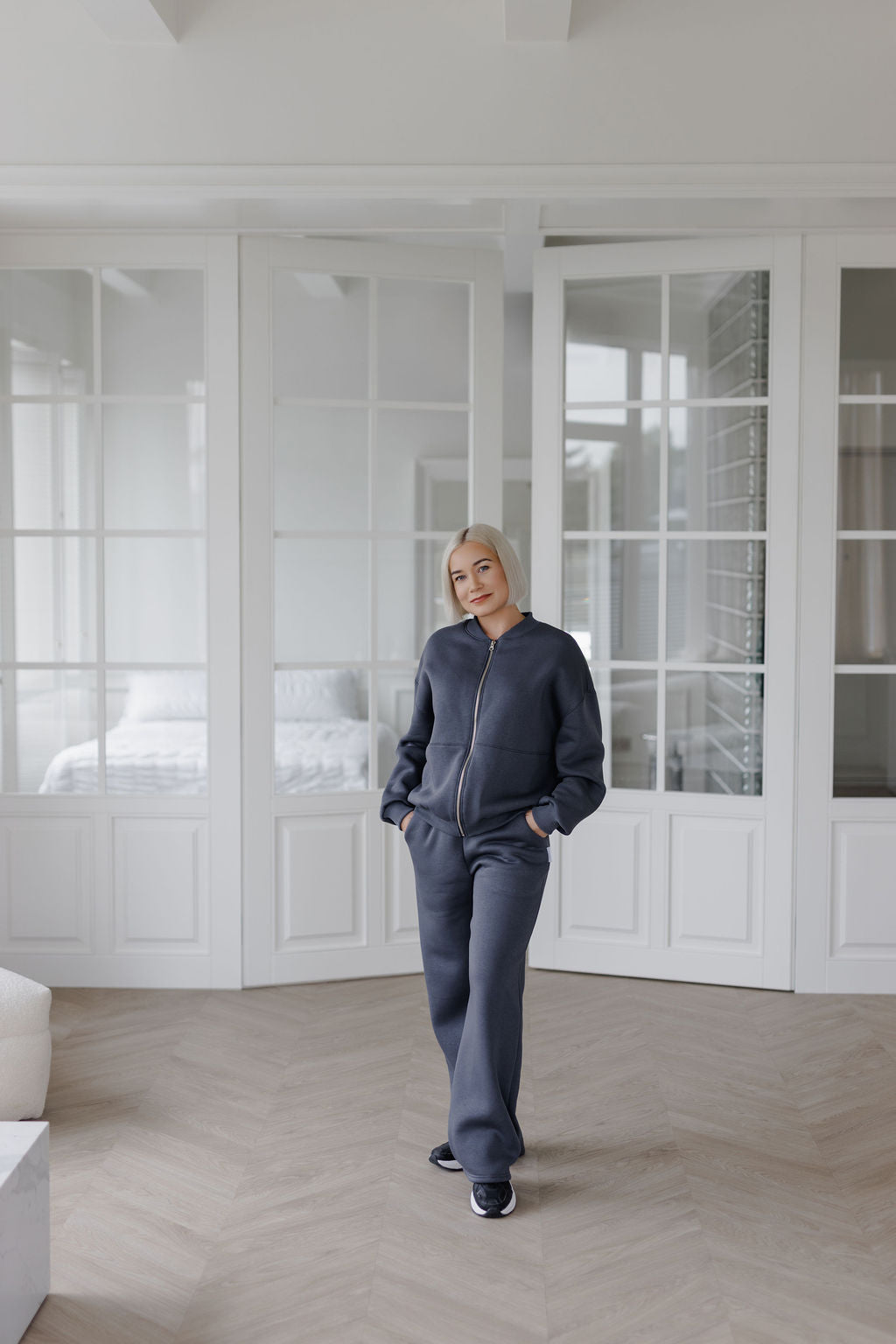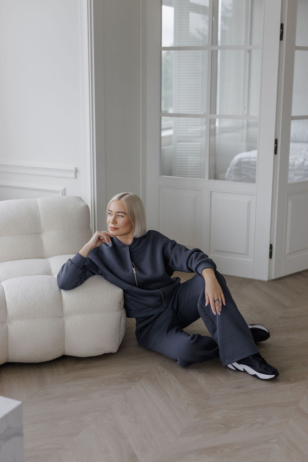 Šis kostiumėlis sukurtas toms, kurios vertina patogumą, kokybę ir stilių viename.Džemperis su pilnu užtrauktuku per priekį bei minimalistine apykakle – funkcionalus pasirinkimas tiek kasdienai, tiek laisvalaikiui. Užsegimas leidžia lengvai reguliuoti, kaip norisi dėvėti: užsisegus iki galo – daugiau šilumos, o prasegus – laisvesnis, sportiškas įvaizdis.