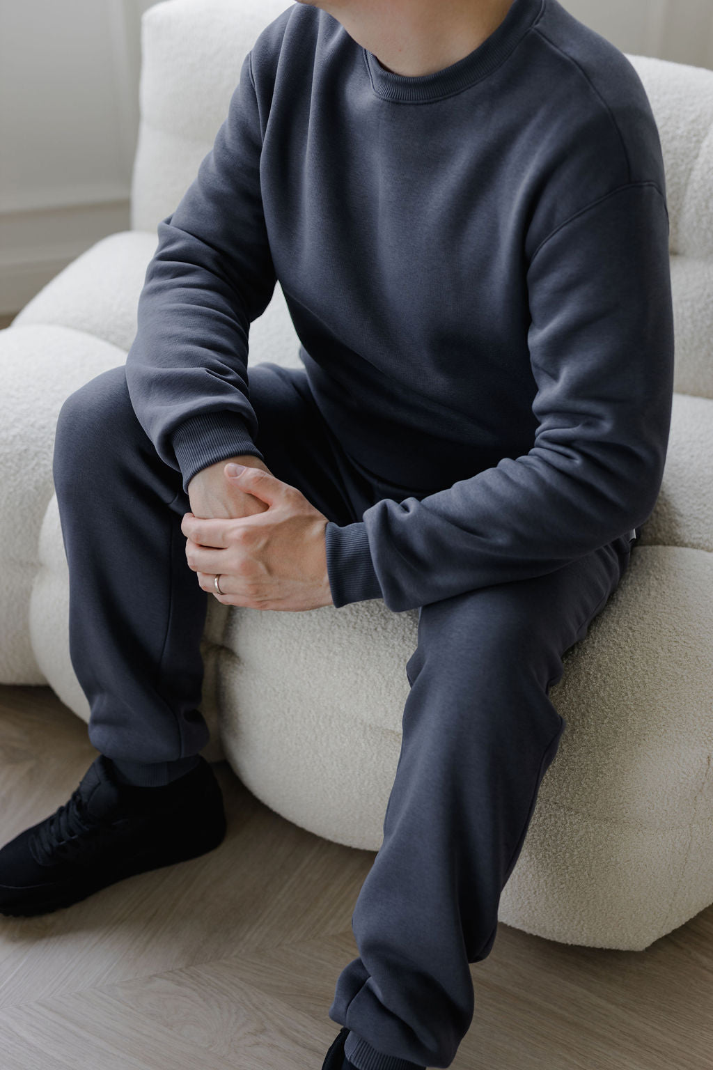 Laisvalaikio kelnės sukurtos taip, kad atitiktų kasdienius poreikius: jos turi vidutinio aukščio liemenį, patogias gilias kišenes šonuose ir apačioje yra užbaigtos elastinga „rib“ medžiaga. Pagamintos iš to paties kokybiško trikotažo kaip ir džemperis, jos išlaiko formą, nesiglamžo, o vidinė pusė suteikia šilumos bei jaukumo jausmą.